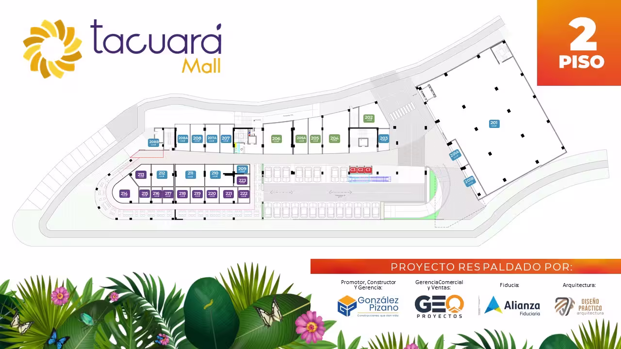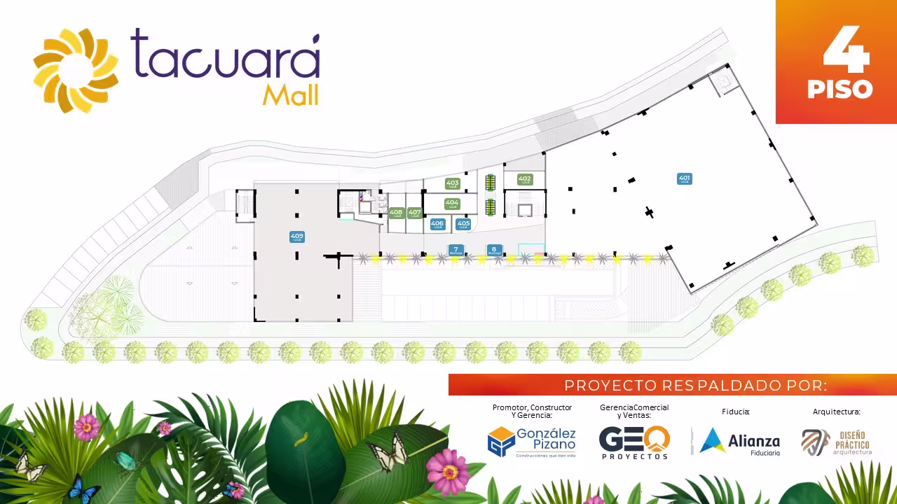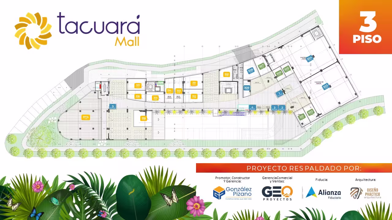 Las empresas que respaldan el Proyecto del Centro Comercial Tacuará Mall, son las Constructora Gonzalez Pizano SAS, la Constructora Geoproyectos SAS y la Fiducia, Alianza Fiduciaria SAS.